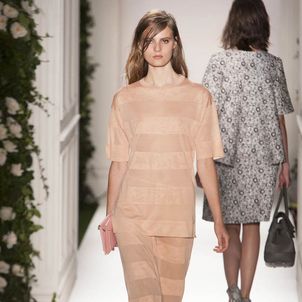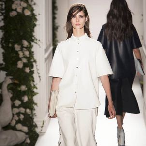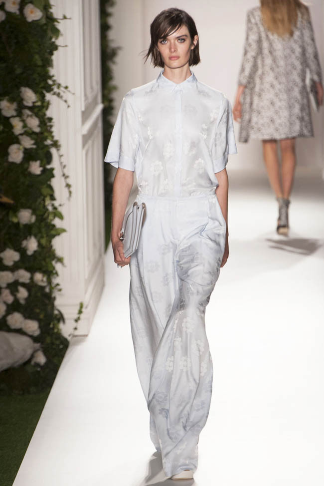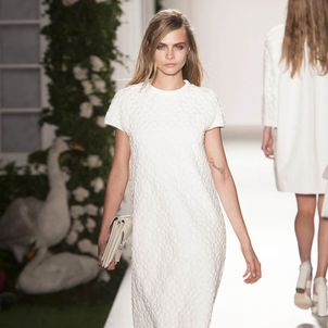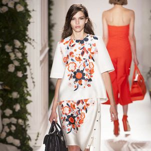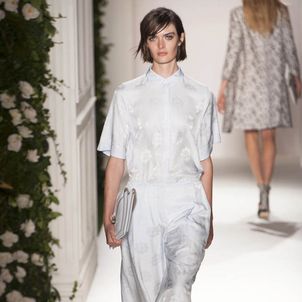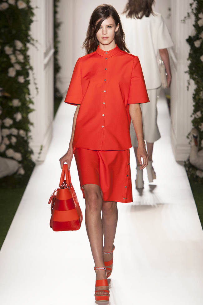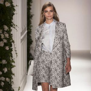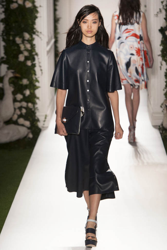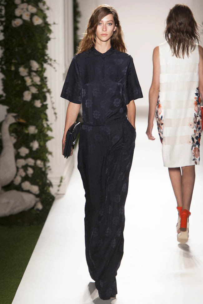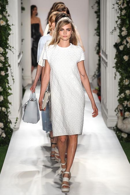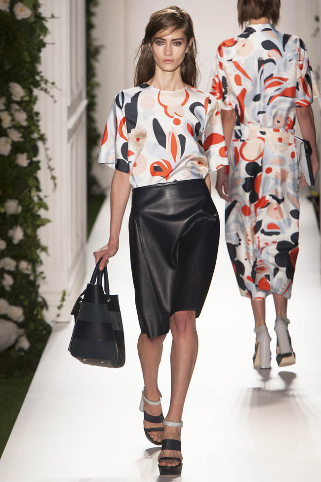After six years at helm of Mulberry, creative director Emma Hill presented her final collection for the brand’s spring 2014 runway show at London Fashion Week. The outing was elegant yet practical with a color palette of basic black and white infused with touches of red, nude and blue. Hill celebrated inherently English themes such as tea parties, estate gardens and even bull dogs with her playfully demure looks.