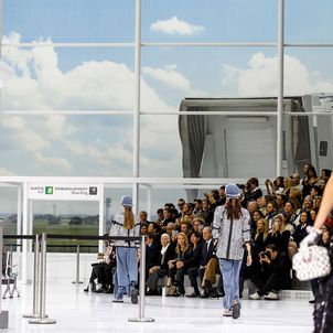For its Spring/Summer 2016 presentation, CHANEL transformed the Grand Palais Paris into an airport terminal as models prepared to board the #CHANELAirlines.