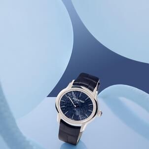 This design watch is a statement of creative freedom and free-spirited individuality. In defiance of the rush and frenzy of today’s world, the Millenary Frosted Gold Philosophique puts time on women’s side, its single hand defying contemporary conventions of time measurement.