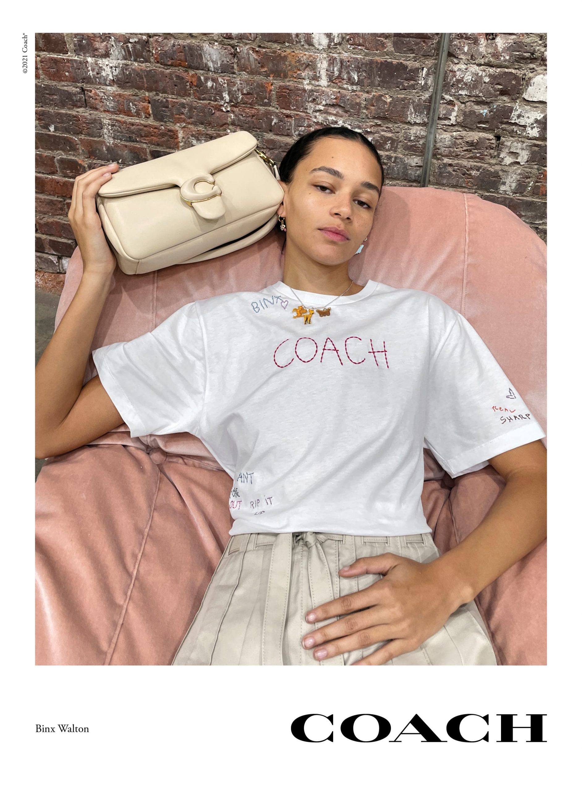 Inspired by the house’s playful approach to authentic American heritage, the campaign emphasizes the sensual appeal of the Pillow Tabby, a new take based on the structured silhouette of an archival 1970s Coach design with plush, ultra-soft leather and wrapped Signature hardware.