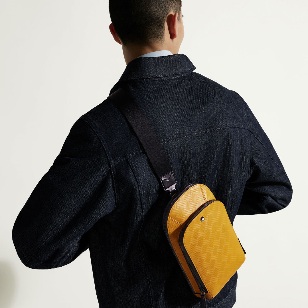 Crafted from embossed full-grain leather, the Extreme 3.0 Sling Bag in Warm Yellow emits a bright elegance, reflecting the spirit of Montblanc’s Spring/Summer 2024 Leather Collections. Designed by Marco Tomasetta.