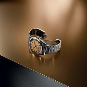 The aesthetic is immediately defined by a 39-millimetre stainless steel case that features intricate, fine faceting. This geometric precision extends to the integrated bracelet, creating a seamless play of light across both polished and satin-brushed surfaces. The dark champagne-colored dial offers a sophisticated depth, enhanced by a vertical-brushed finish and distinctive applied hour markers that alternate between Roman and Arabic numerals.