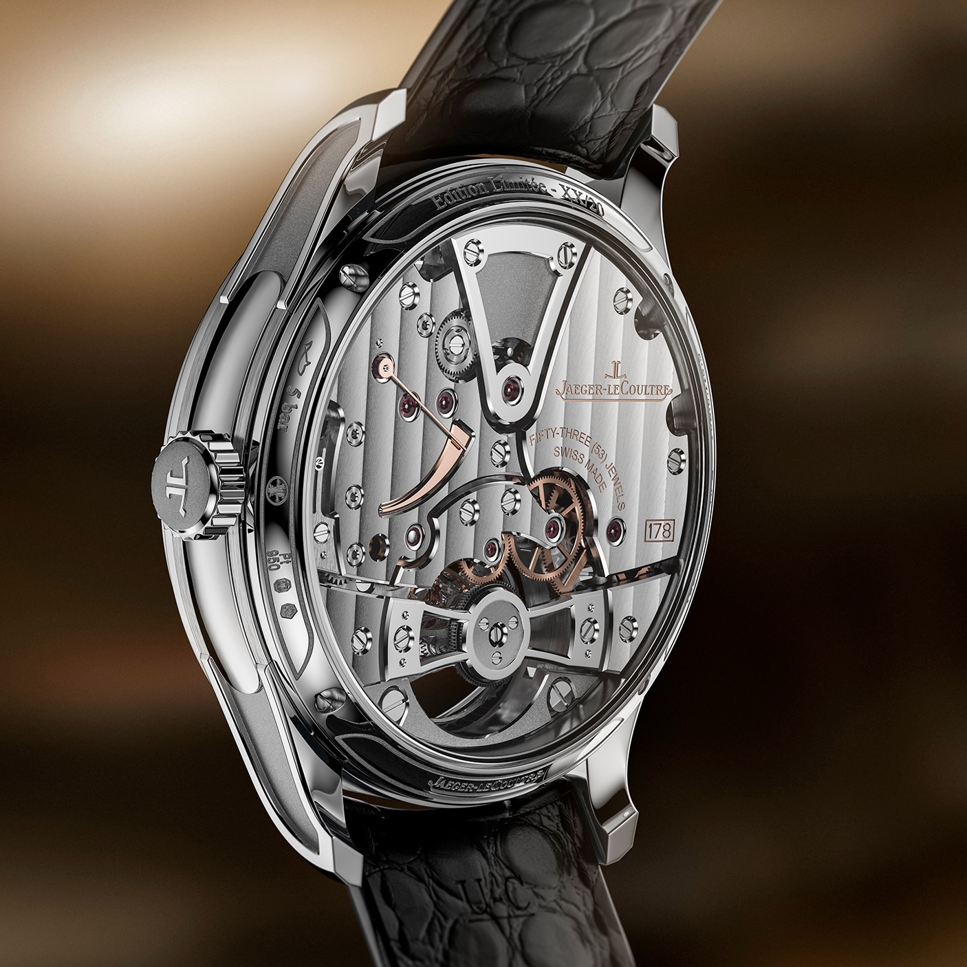 Sculptural beauty is forged through the meticulous application of Métiers Rares handcrafts across every surface of the movement. Jaeger-LeCoultre has blurred the distinction between dial and movement by applying 16 different decorative techniques typically reserved for a watch face directly onto the plates and bridges. The sheer scale of this artistry is reflected in over 65 hours of hand-bevelling applied to 55 individual components, featuring 64 intricate inner angles that serve as a testament to extreme precision.