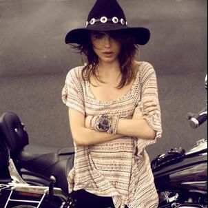 In this fashion spread entitled "Desert Fox" in Style Stalker magazine, photographer Zanita Whittington captures model Bambi Northwood-Blyth in biker chick chic. Ready to join her on the motorbike on a cross-country trip?