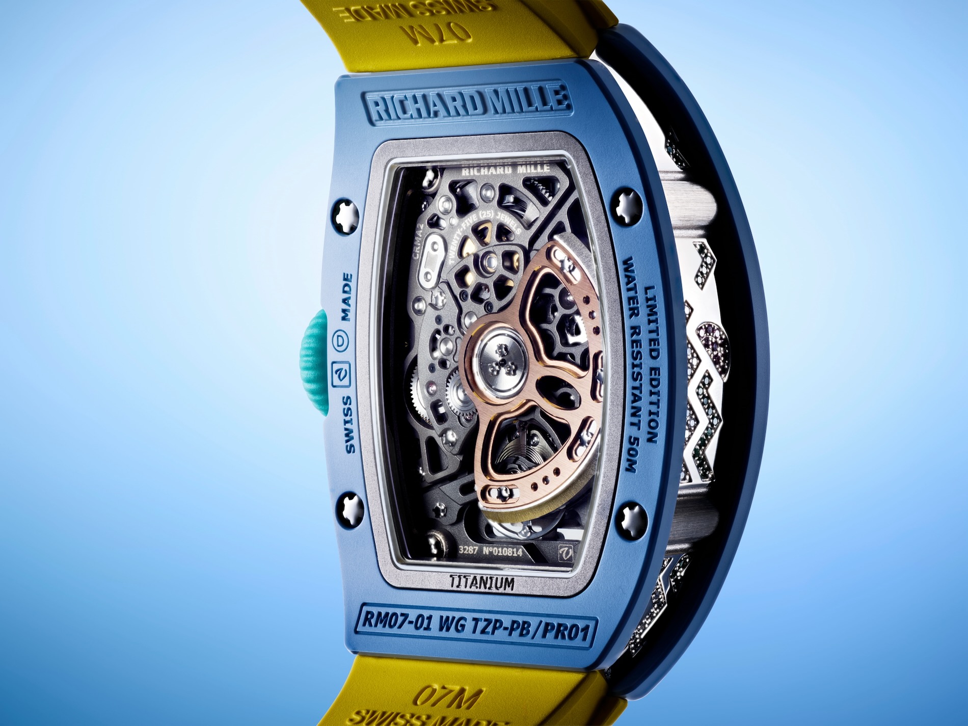 Each colorway offers its own unique play of light and gems. The RM 07-01 Blush Pink features a combination of diamonds with yellow and blue sapphires, while the RM 07-01 Powder Blue pairs diamonds with pink sapphires and tsavorites. The RM 07-01 Lavender Pink reveals an energetic display of diamonds, orange sapphires, and rubies. Together, these mastered harmonies celebrate a creative audacity that remains deeply respectful of watchmaking traditions.