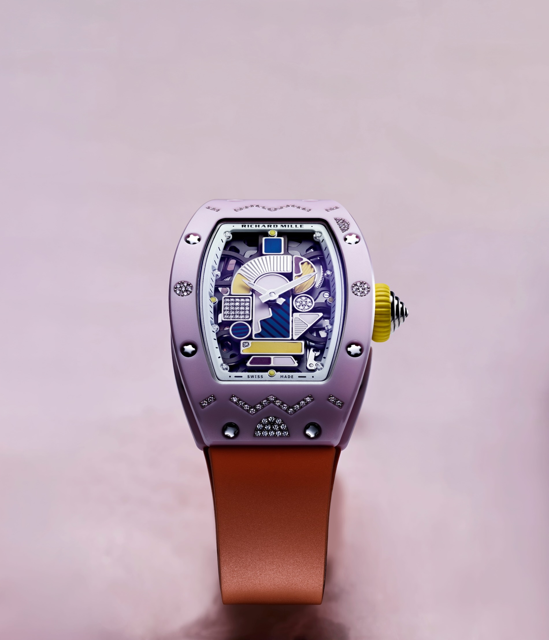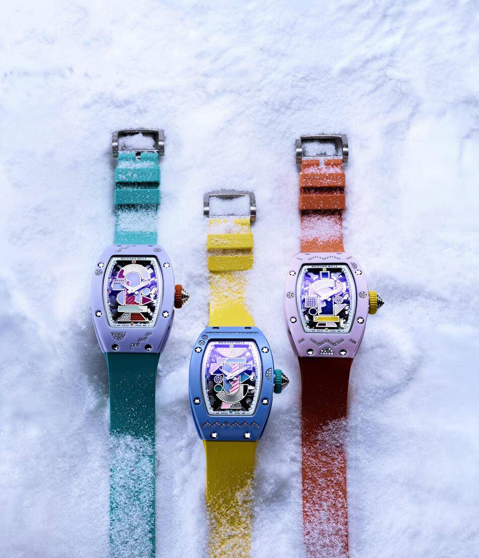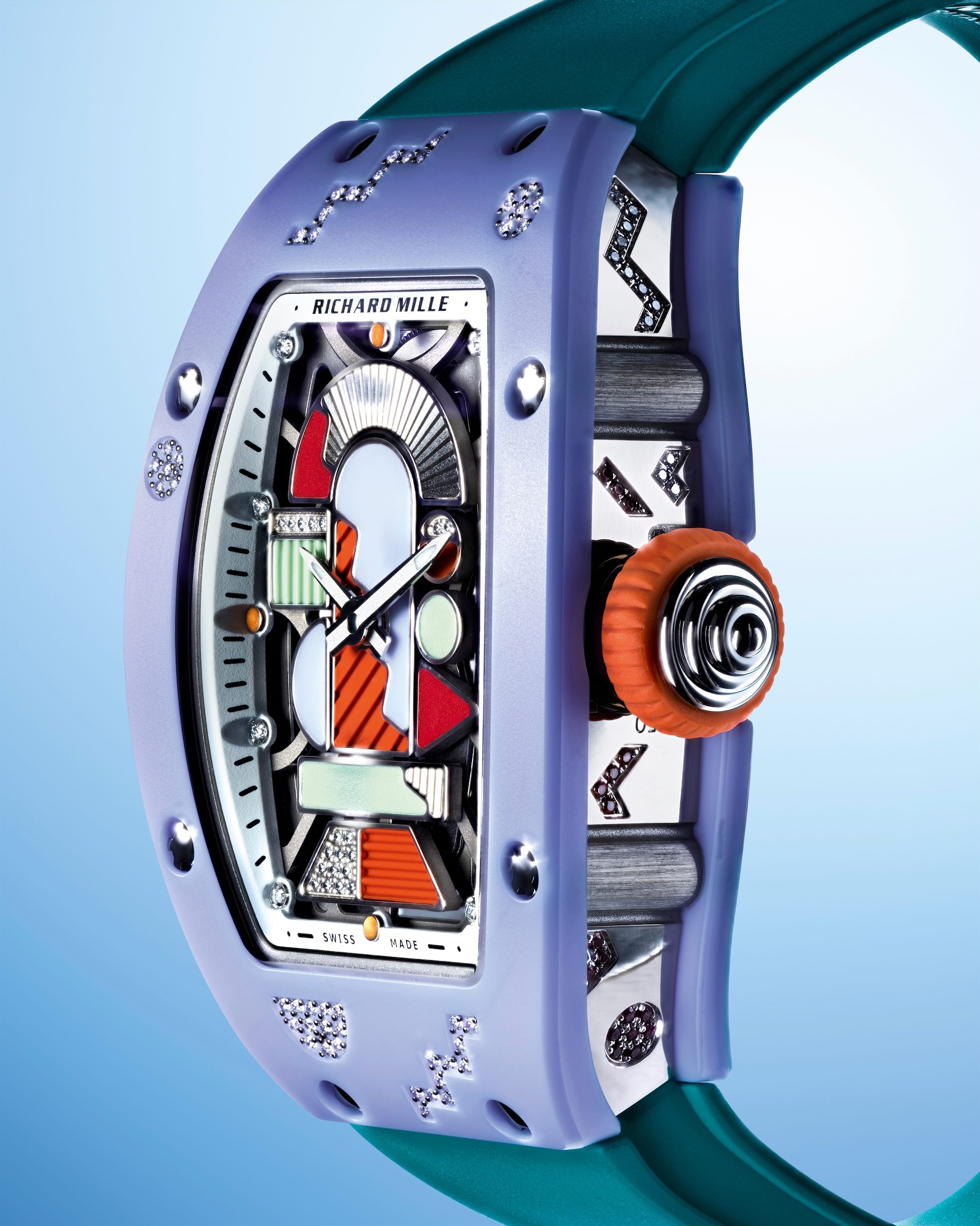 Inspiration for the collection stems from the electric energy of the 1980s, an era defined by emancipation and the use of unexpected materials. Richard Mille revisits this heritage through dials that are rich in decorative techniques. Creative and Development Director Cécile Guenat notes that "these watches play on the juxtaposition of vibrant colours and contrasting textures, asserting a singular and disruptive graphic identity".