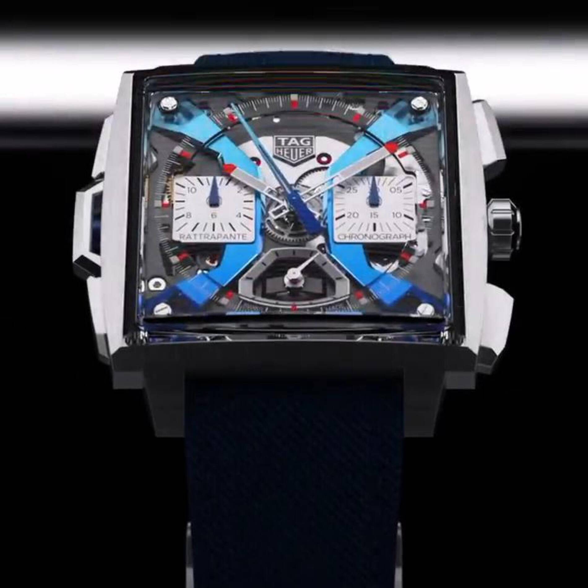 Two variations of this novelty are available, the first is a dynamic and sporty red variation inspired by the racing DNA of the Maison, and the second, a classic, timeless blue version, paying homage to the original color code of the Monaco.